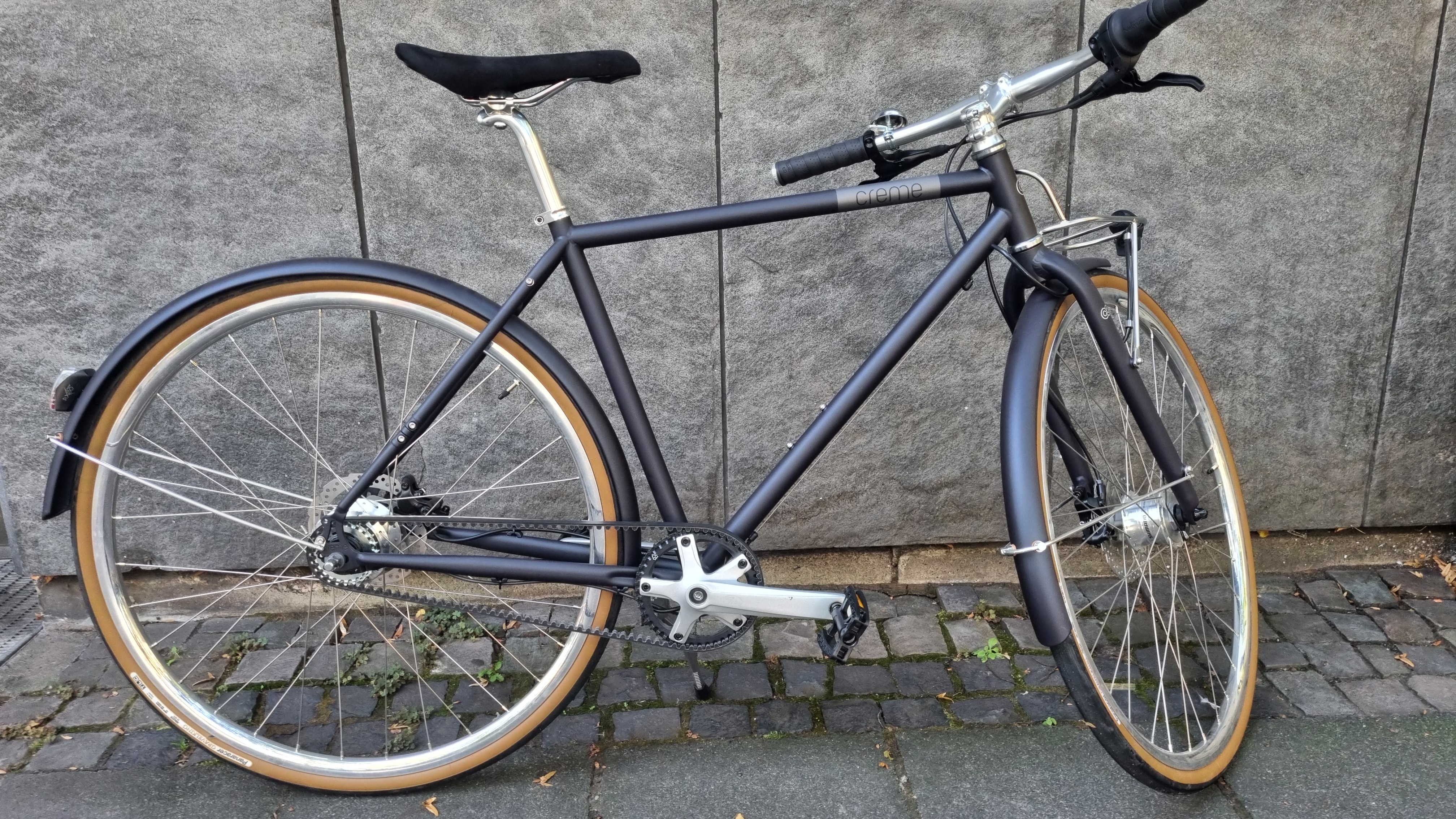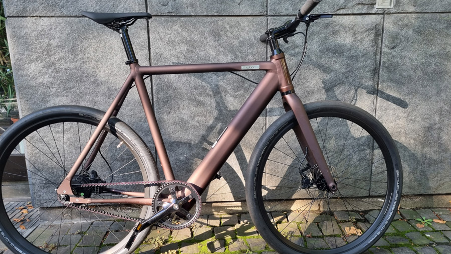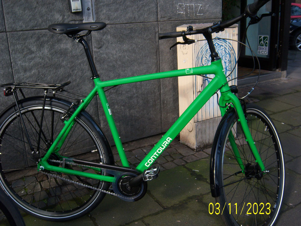 Brooks Candium Sattel, Alu Gabel, Alfine 8-Gang , kraftvolle hydraulische Scheibenbremsen, Gates- Riemen.