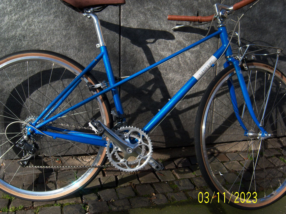 leichtes Damenrennrad in gemufft / geschweissten ChroMoly Rahmenrohen und -gabel.